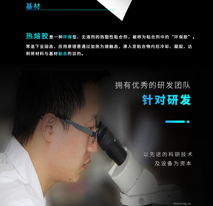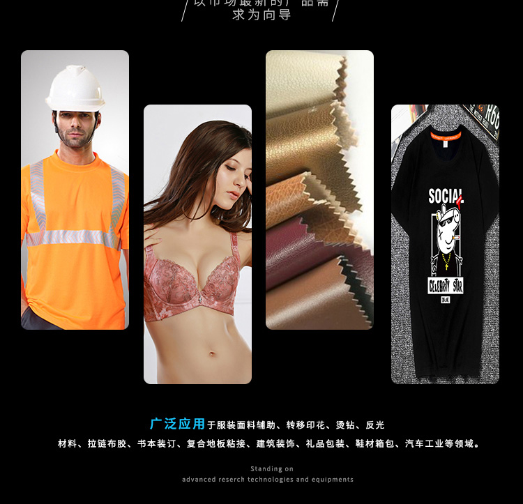 共聚酯熱熔膠顆粒通過熱熔涂布、熱熔噴涂、熱熔流延等工藝來生產(chǎn)熱熔膠平面膜、網(wǎng)膜及熱熔膠帶。廣泛應(yīng)用于拉鏈布膠、包裝材料、反光材料、汽車工業(yè)、家用紡織、裝飾材料、過濾材料等領(lǐng)域。